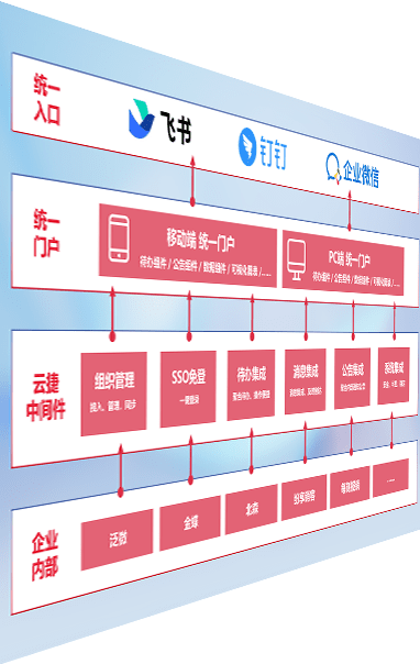 对协作平台提供支持服务,,,支持企业应用与协作平台对接,,,,包含组织同步、、、消息集成、、、、待办集成等。。支持目前主流的协作平台:钉钉、、企微和飞书。。。。